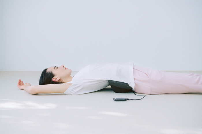 エアバッグとEMS、ヒーターの3機能がひとつになったストレッチマシン。40〜50℃のヒーターで体を温めながらEMSで筋肉にアプローチ。さらにエアバッグで押し上げやひねりなどの動作を加え、寝たままエクササイズを実現します。