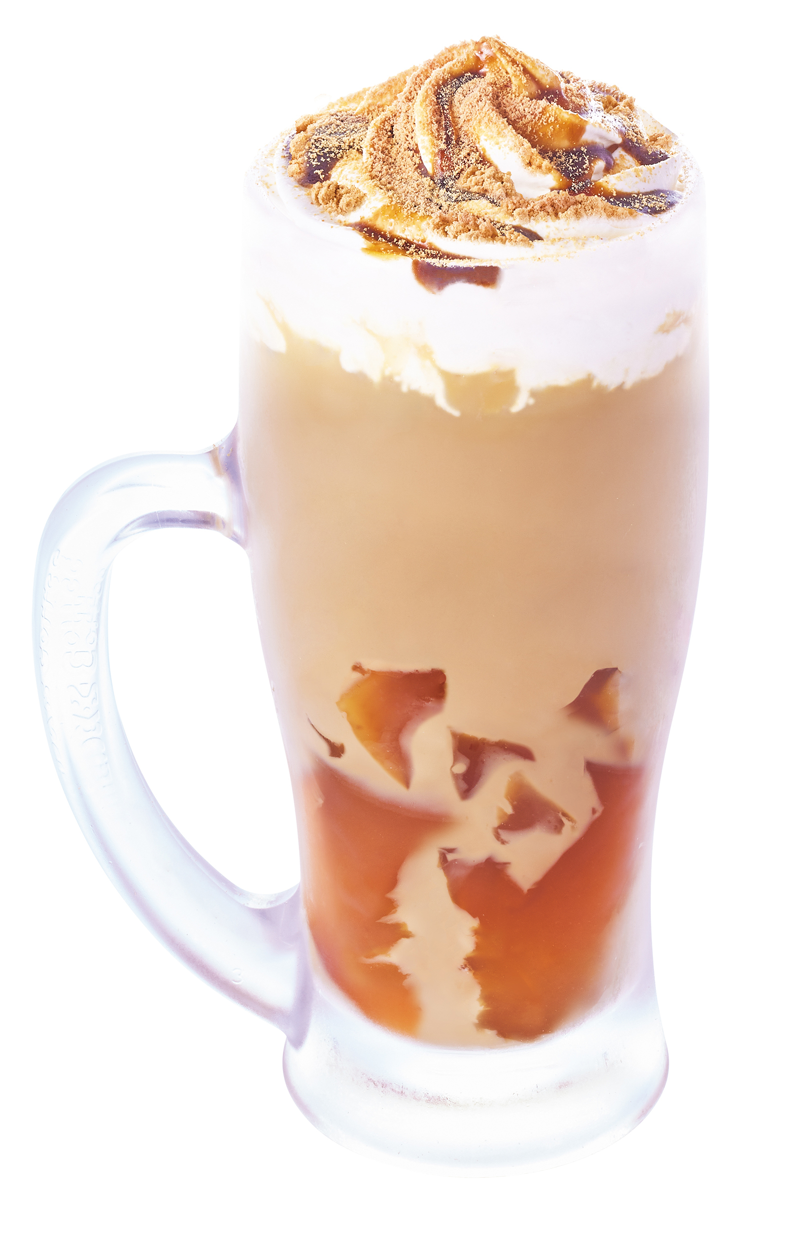 つるんとした口あたりともっちり食感がお楽しみいただけるゼリーを、なめらかなきな粉ドリンクと組み合わせました。仕上げにホイップクリームと、桔梗信玄餅と同じきな粉と黒蜜をトッピング。香ばしいきな粉と深みのある黒蜜が織りなすハーモニーに、もっちりゼリーの食感が加わり、まるで桔梗信玄餅を、そのまま飲んでいるかのような味わいをお楽しみいただけます。