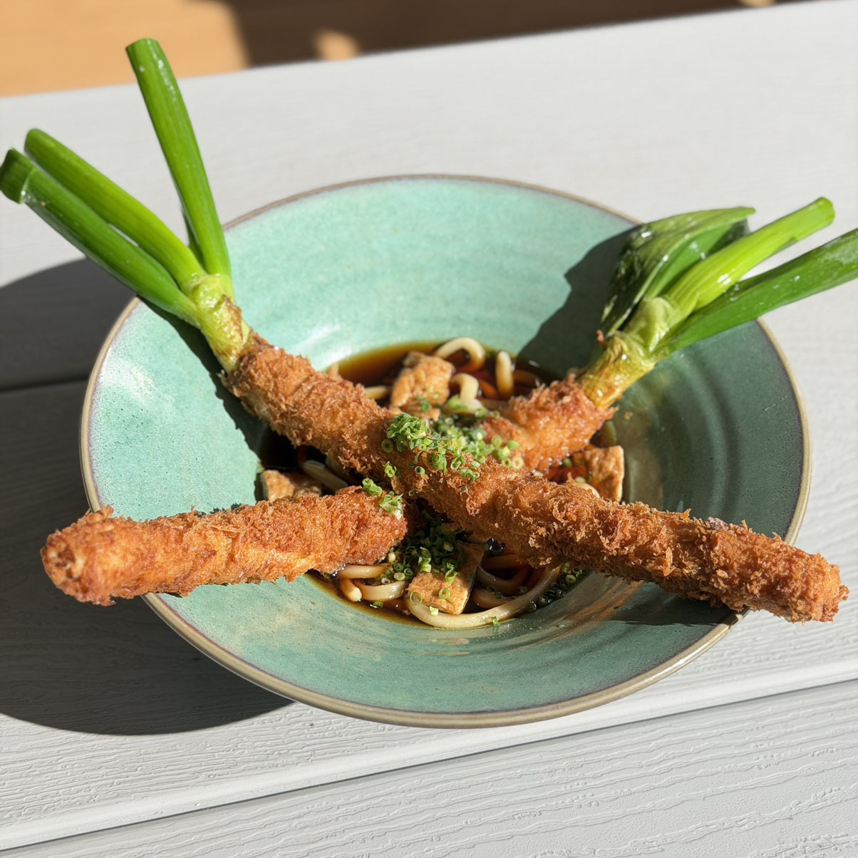 通常1本まるごとですが、イベント開催期間中は、まるごと2本がトッピングされます。深谷ねぎを丸ごと豚肉で巻いた1本カツを、お値段変わらず2本トッピングします!