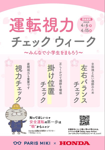 パリミキ×Honda「Safety Japan Action」 交通安全啓発コラボ! 運転視力チェック週間で安全運転をサポート