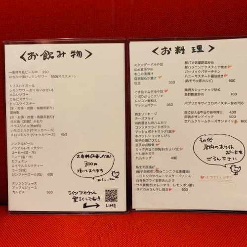 元ドラマーで京アニ(京都アニメ)推しのニッシーさんの楽しいトークが早くも人気です。もちろん、ライブで鍛えた必殺の揚げた鳥と数々の創作料理が美味しい酒場です。