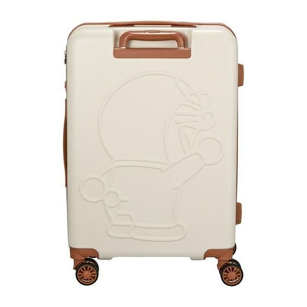 ベージュはブラックと違った軽い印象、かわいらしい印象が素敵です。ボディには剛性・耐衝撃性がある『ABS樹脂』に、飛行機の窓などにも使われる頑強・軽量素材の『ポリカーボネート』を加えた混合素材を採用しているそうで、頑丈さも問題なさそうです。こちらでは内装のデザインが確認できないのですが、内装のファスナートップがドラえもんのお顔の形をしていたり、内装生地はドラえもんのお顔やドラえもんのすず、DORAEMONのアルファベット文字が散りばめられた総柄デザインになっているそうです。そんなデザインがあると、スーツケースを開くたびにテンションも爆上がり間違いなしではないでしょうか?【内寸:H56×W40×D25cm】【重量:約3.6kg】【容量:約53L】【ロック:シフレロック(2wayダイヤルロック&キーロック)、TSロック】【宿泊目安:約3~5泊】 サイズ:62cm×42cm×26cm