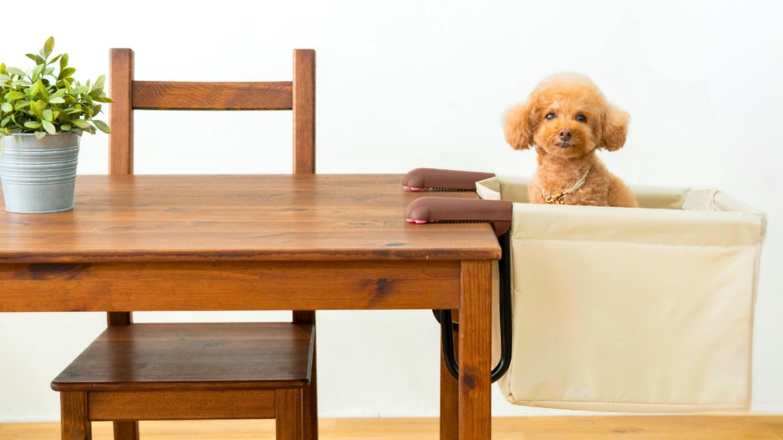 そんな声から生まれたのが、テーブルに取り付けることで小型犬・猫のための快適な“指定席”をつくれるペットチェアです。