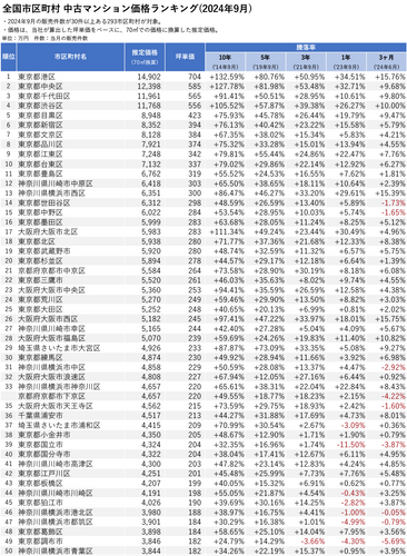 全国市区町村 中古マンション価格騰落率ランキング(2024年9月_前年比較)