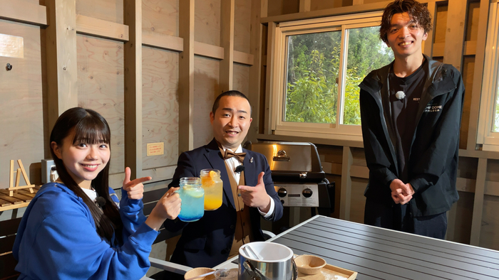 山口さん&りこち(工藤理子)ペアは、グランピング施設内でぬくぬくネタ探し