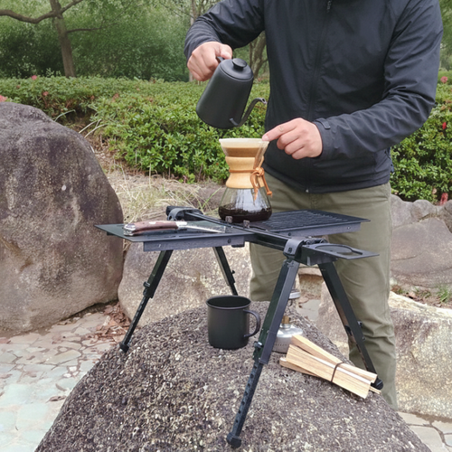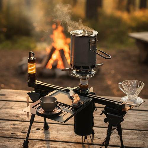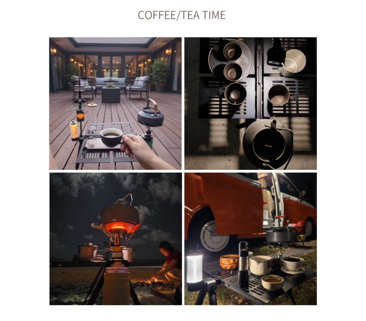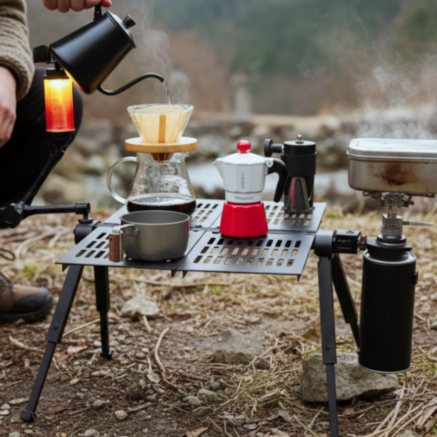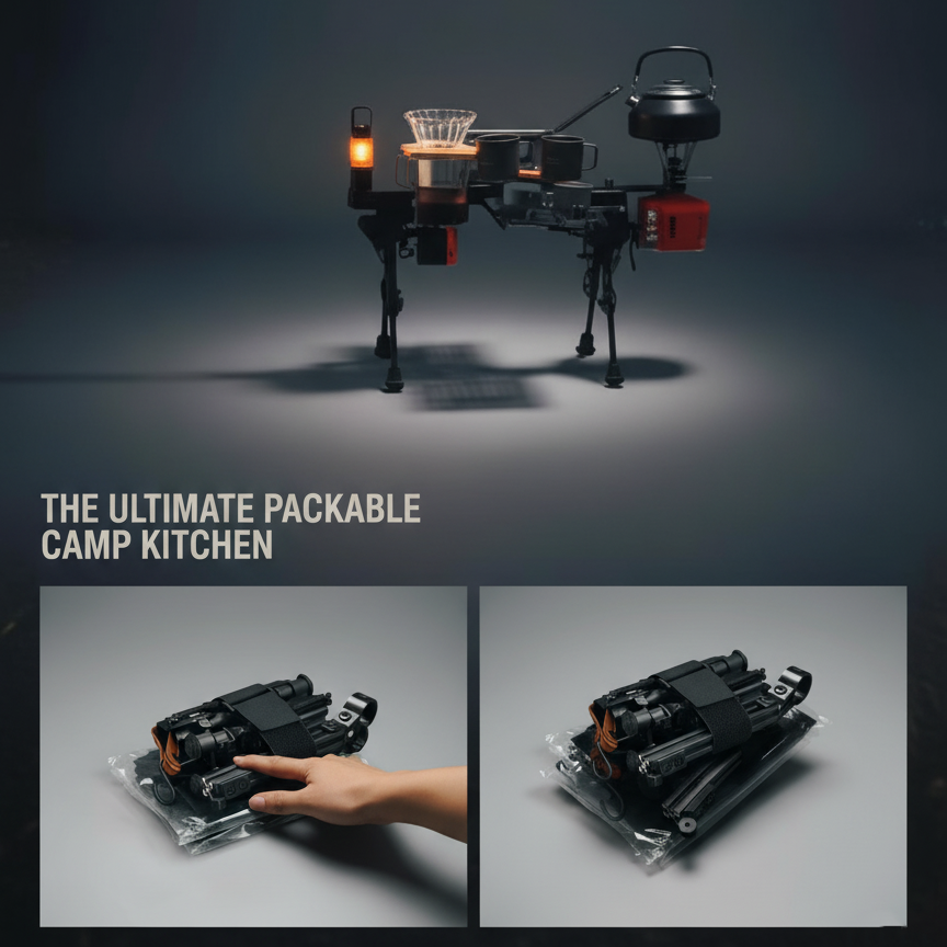 モジュラー設計によりサイドテーブルやドリンクホルダーなど各種オプションをクイック装着できるため、撮影機材や調理ギア、キャンプ小物との組合せが自在。屋内ではサイドテーブルや撮影小道具として、アウトドアでは軽量な作業台や、OD缶を用いた非常時の簡易キッチンとしても応用可能で、日常とアウトドア、そして緊急時の備えまでを見据えた汎用性が評価されている。