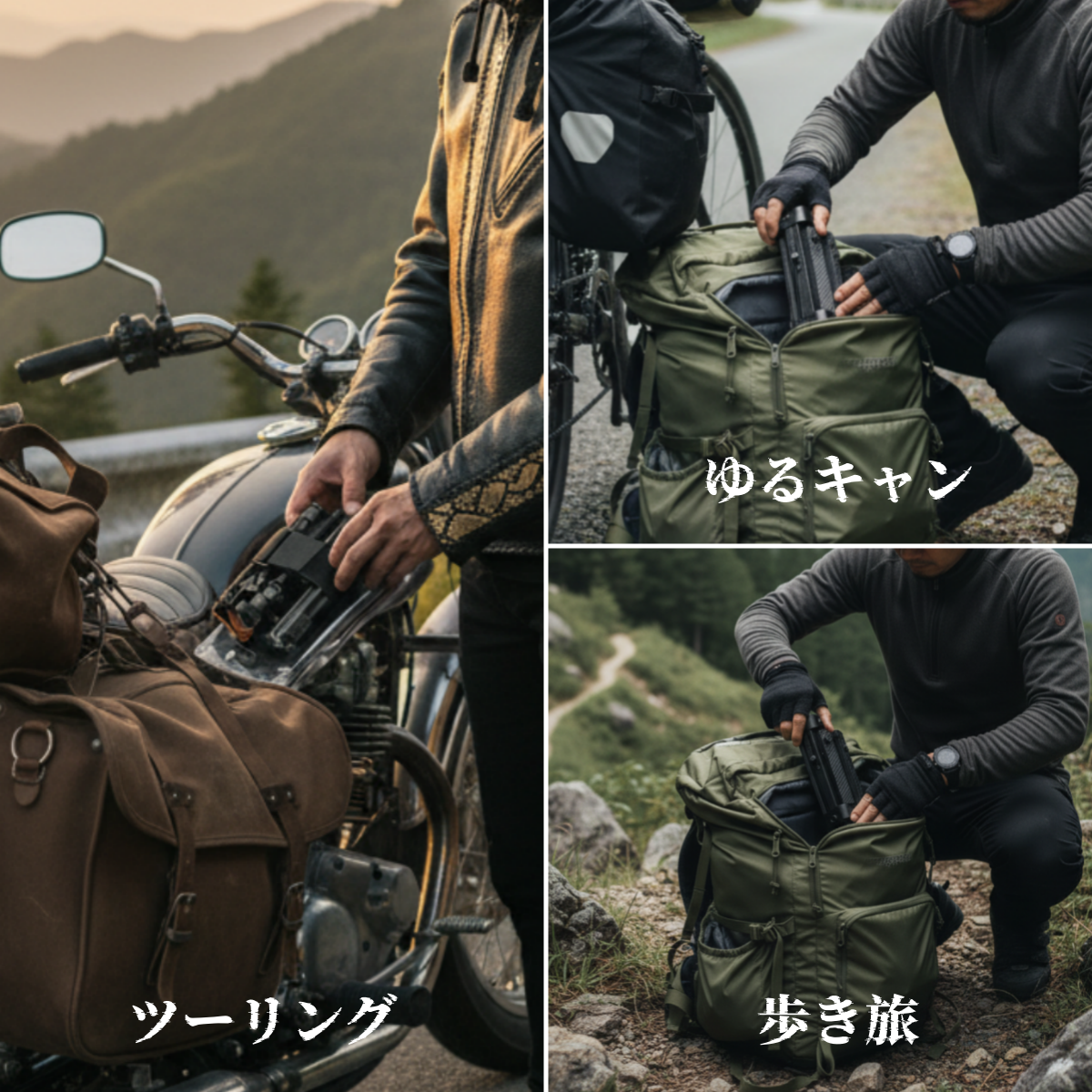 本製品はコンパクト性・軽量化・デザイン性・機能性を両立し、ツーリングやソロキャンプ、室内のサブテーブル、非常時の簡易キッチンなど幅広い用途で活躍できる。