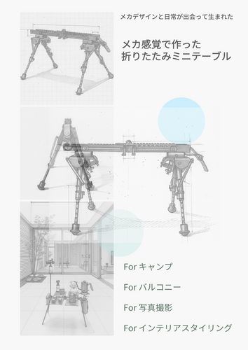 近年、携行性とデザイン性を兼ね備えたアウトドアギアへの関心が高まる中、Team Aotsukiの「機銃犬」は“機構美”を意匠に落とし込みつつ、実用性を徹底追求した折り畳み式ミニテーブルとして注目を集めている。
