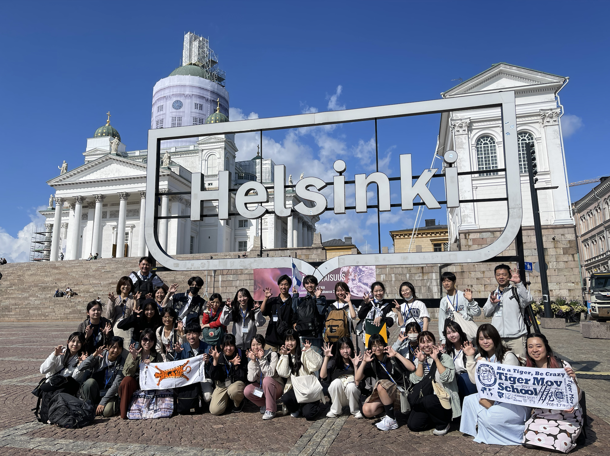 今回は、直方市の教育理念「未来を拓く~新しい時代をたくましく生き抜く人づくり~」をもとに、VUCAの時代において、こどもたちに本当に必要な「生きる力」を育むことを目指しました。フィンランドは、教育の質が非常に高く世界最高水準と言われており、日本では起業家精神と訳されるアントレプレナーシップ教育にも国を挙げて取り組んでいます。プログラムでは教育と自然をテーマに、Learning by Doing(実践による学び)の考えのもと、実際に授業を行い、フィンランドの街中でのインタビュー活動も実施しました。また、国立公園での自然体験や世界一イノベーティブと称される図書館の訪問、在フィンランド日本人や現地の学生との交流など、多彩なプログラムを展開しました。