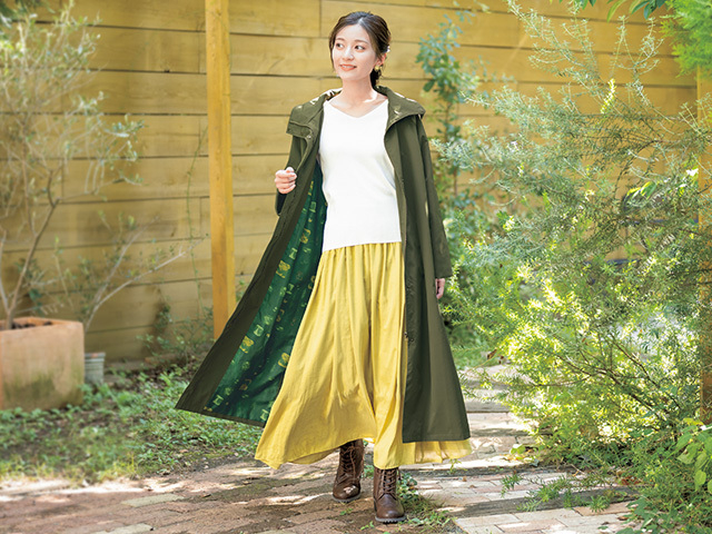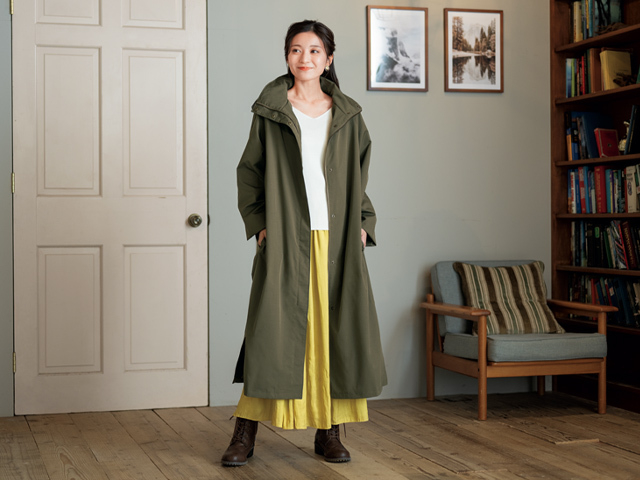 重ね着しやすいサイズ感なので中に薄手ダウンを着込めば冬も活躍し、秋から春先までたっぷり楽しめるコートです。