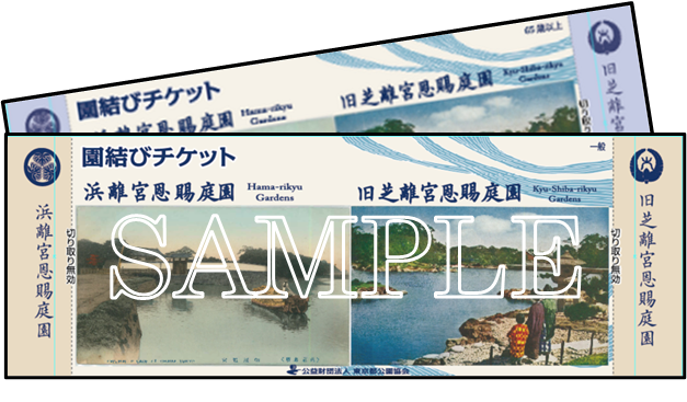 浜離宮恩賜庭園と旧芝離宮恩賜庭園の入園料がお得になる「園結びチケット」を、本イベントに合わせた特別絵柄のチケットで発行します。(2庭園の窓口で合計限定1,000枚販売、各園なくなり次第終了)