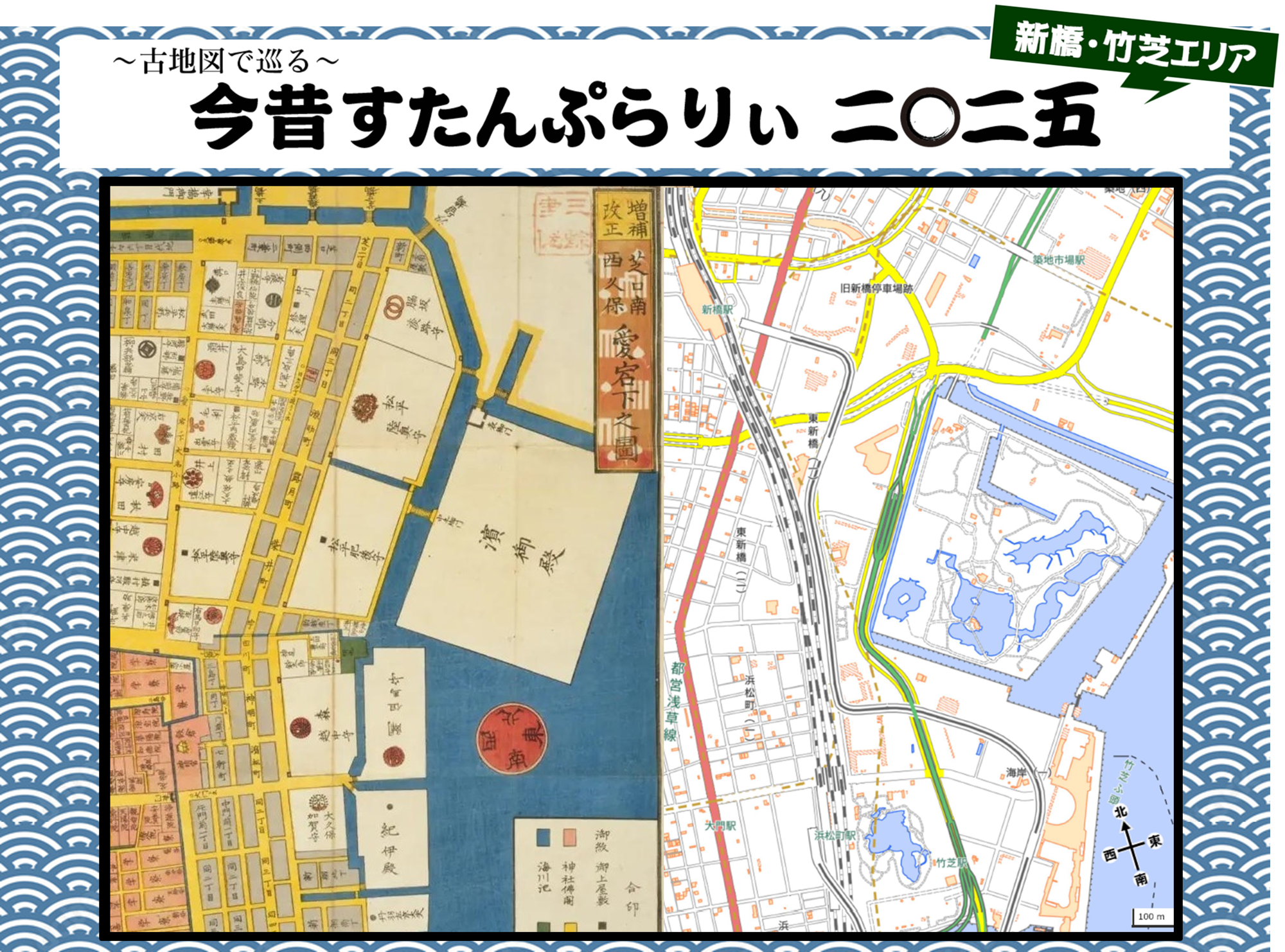 数多の人々が行き交ってきた歴史あるこの海辺の地で、このたび、『~古地図で巡る~ 新橋・竹芝エリア今昔すたんぷらりぃ二〇二五』を開催いたします。
