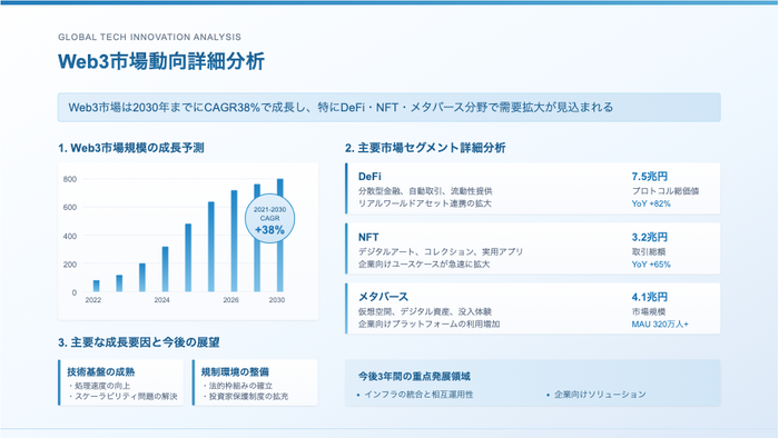 本機能を利用すると、「タイトル」と「内容」を入力するだけで、AIが最適なスライドデザインを自動生成します。さらに、Web検索機能を活用することで、情報の補完もスムーズに行えます。デザインのプレビューはリアルタイムで表示されるため、スライドの完成イメージを即座に確認できます。