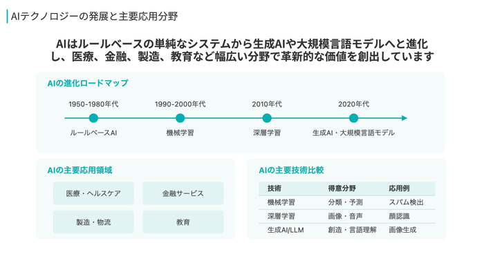 AIが内容にあったデザインテンプレートを提案するため、デザインスキルに自信がない方でも、わかりやすいスライド資料を作成することが可能です。