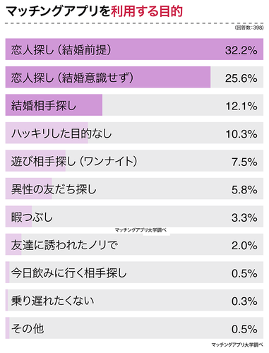 マッチングアプリを使う目的は「恋活・婚活」が7割