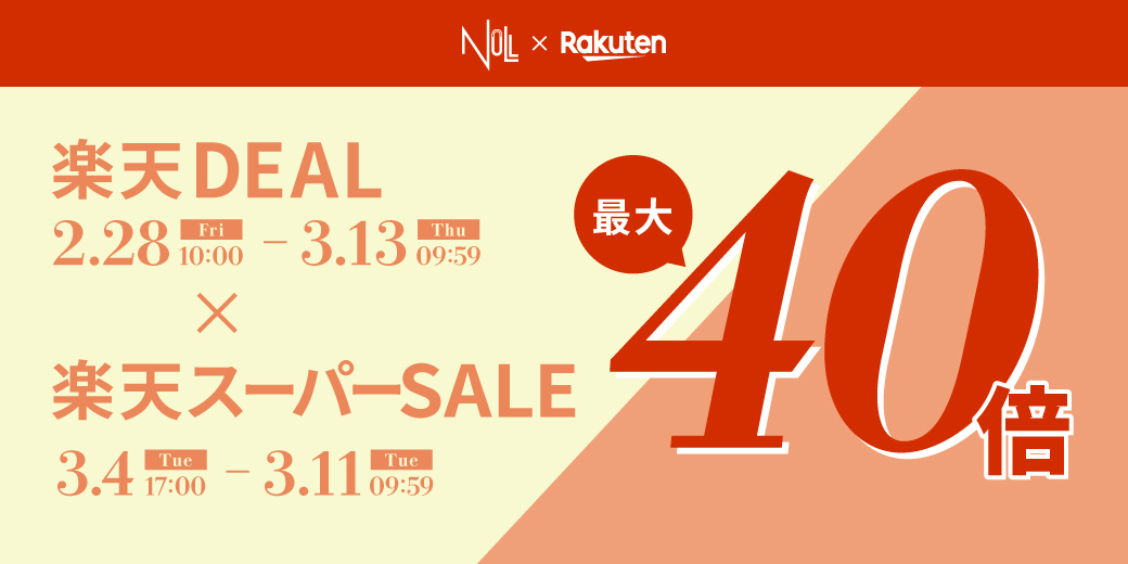 楽天、Amazonで多数の賞を獲得し、ブランド累計販売個数250万個突破※のメンズコスメブランド「NULL(ヌル)」(株式会社G.Oホールディングス:大阪府大阪市)は、2月28日〜3月13日までの期間中、【楽天DEAL×スーパーセール】にて人気アイテム各種を《ポイント最大40倍》で販売いたします。