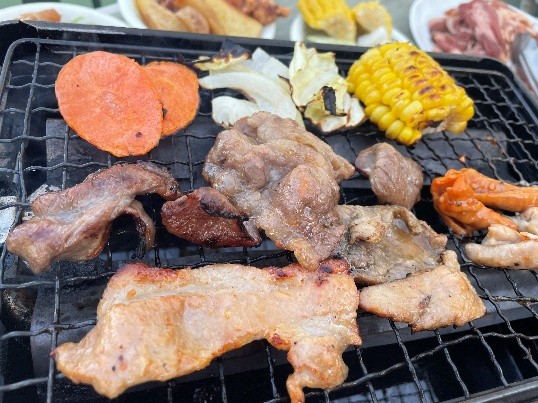 屋上の開放的な空間で、豚肉、鶏肉、ラム肉のBBQセットを卓上でお楽しみいただけます。