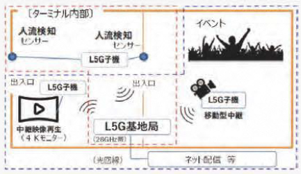 ○大容量の4K映像を、5G通信で会場のモニターに投影し、安定的な高速大容量送信機能を検証します。※YoutubeLive等のネット配信映像は4K映像にはなりません。