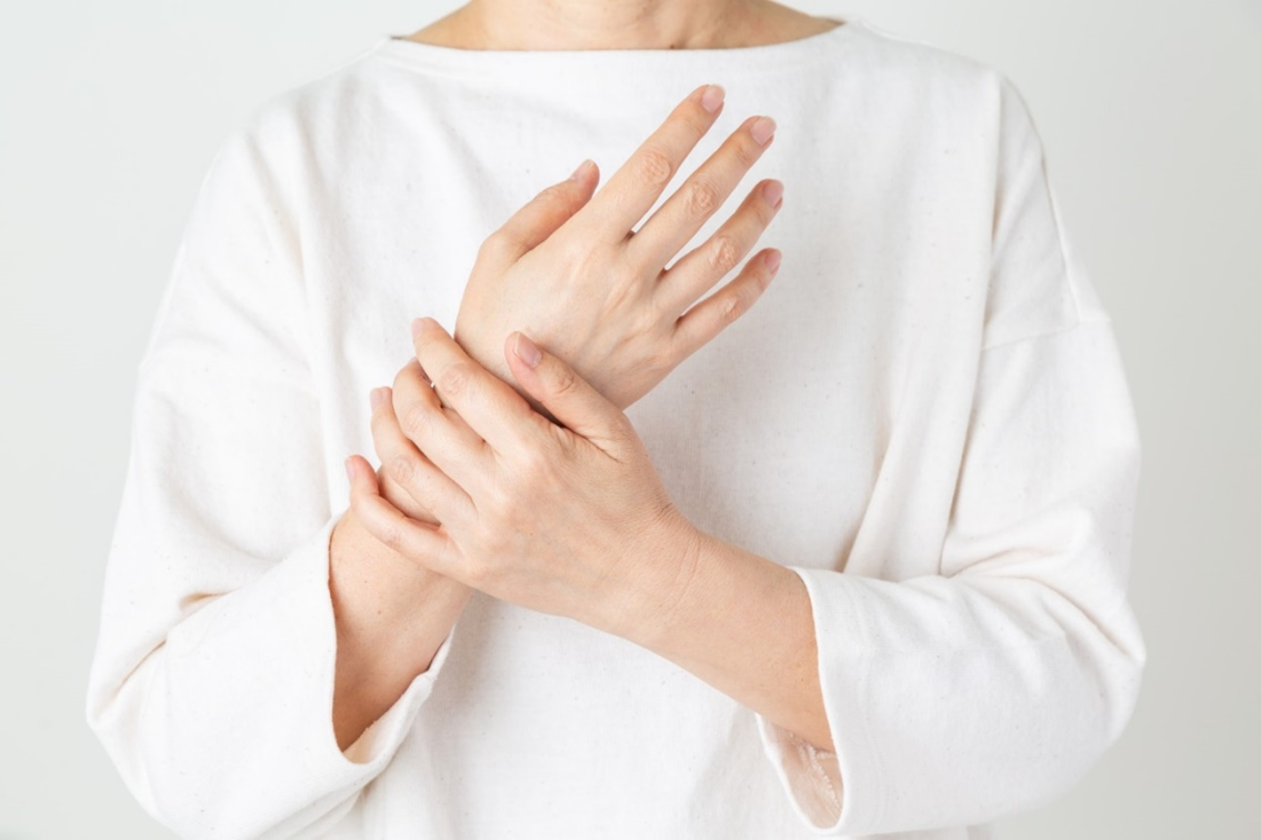 腱鞘炎(けんしょうえん)とは、骨と筋肉をつないで指や手首の曲げ伸ばしを可能にしている腱が太くなったり、腱を包むように収めている腱鞘が硬く厚くなったりして、腱と腱鞘がこすれ合うようになり、炎症が生じるものです。主な原因は生活の中での指や手首の使い過ぎです。さらに、加齢や女性ホルモンのバランスの変化なども影響します。腱鞘炎に注意が必要か、治療が必要かなど、生活習慣やご自身の状況などをチェックしてみましょう。