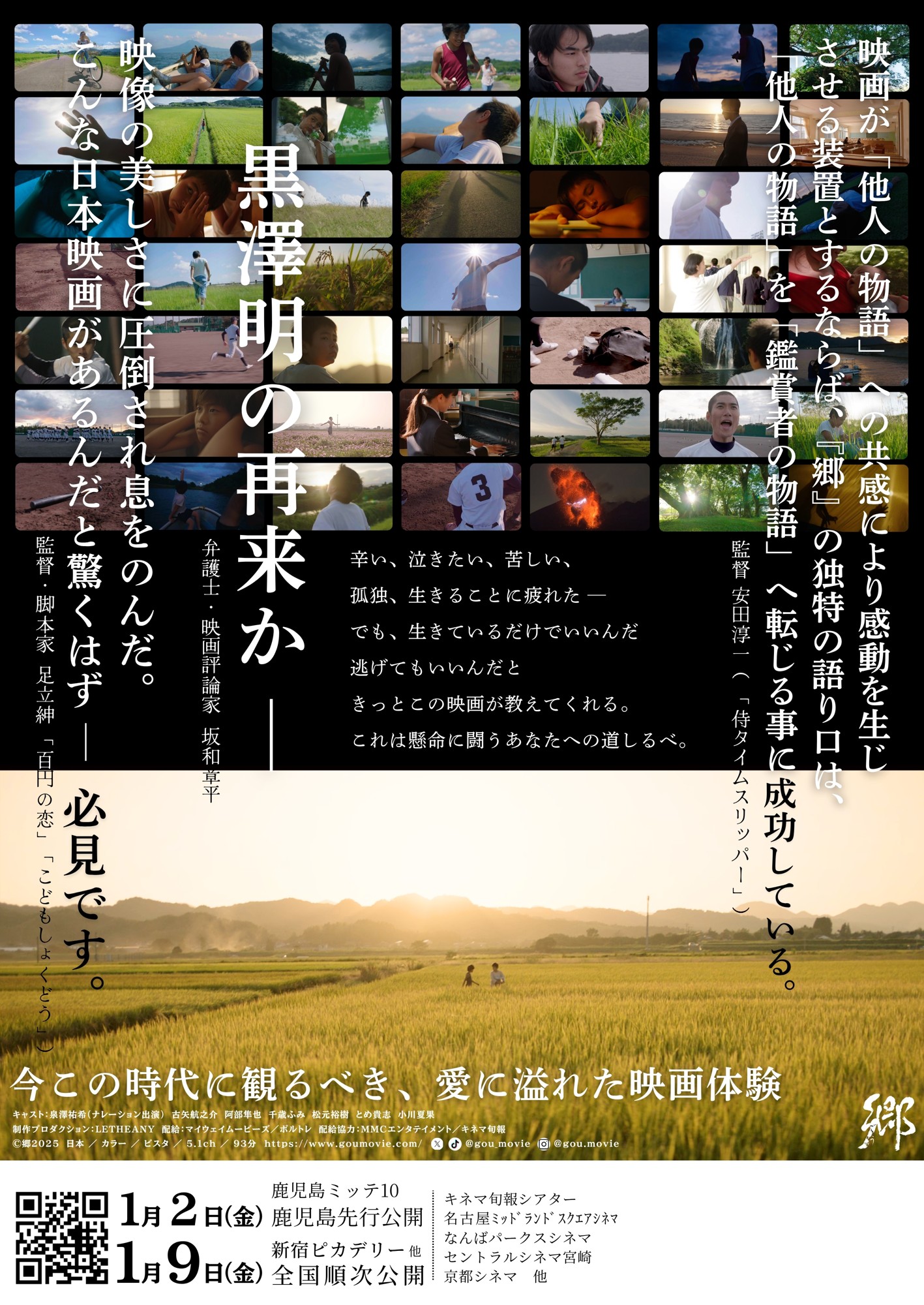 2026年1月2日(金)より鹿児島県にて先行公開、1月9日(金)より全国公開される映画『郷(ごう)』の予告編と本ポスター、監督を務める伊地知拓郎のコメント、そして上海国際映画祭ノミネートの際に審査員を務めた「百円の恋」脚本・足立紳氏からのコメントが解禁された。