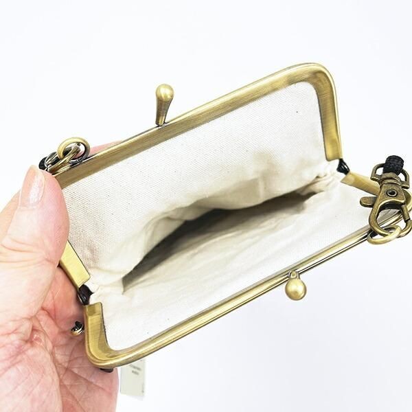 小さめのかわいいミニがま口タイプなので、こまごました持ち物を収納するのに便利です。カバンのなかにそのまま入れたらどこにあるのかわからなくなってしまう、ティッシュや目薬などなどの収納にお勧めです。小さいながらポップなデザインでカバンの中で映えそうです。サイズ:13cm×13.5cm×4.5cm 素材:綿、スチール