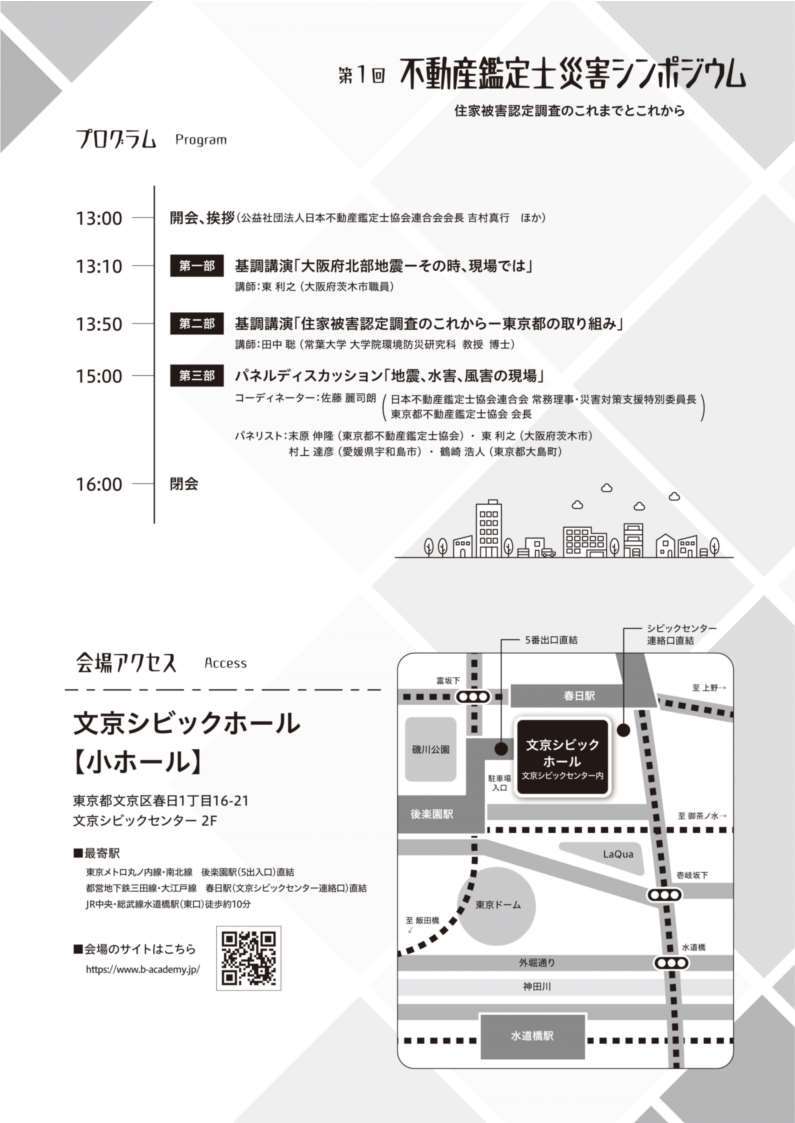 文京シビックホールにて11月20日(月)に 第1回不動産鑑定士災害シンポジウムを開催