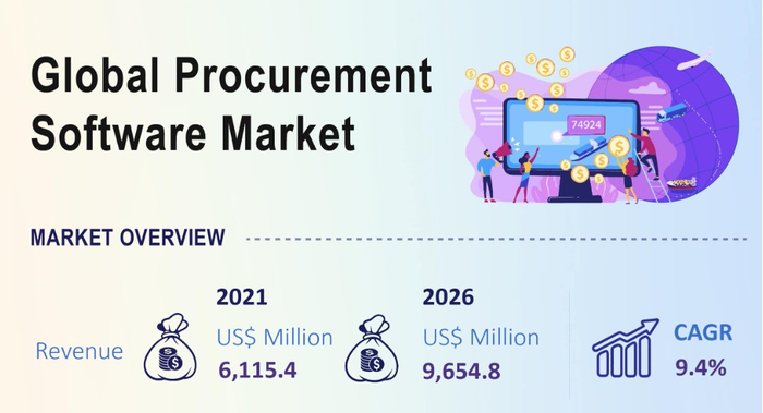 調達ソフトウェアの世界市場は、2026年までに9,654.8百万米ドルに達すると予測されています。この市場は、予測期間中に9.4%のCAGRを記録すると予想されています。