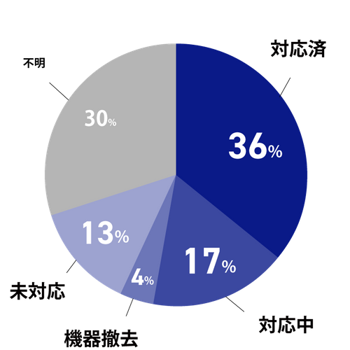 今回の注意喚起連絡時点では、12%の企業は脆弱性対応のためのバージョンアップの必要性を認識していない状態でしたが、58%の企業は必要性を認識しており、すでに対応済みか順次対応中でした。