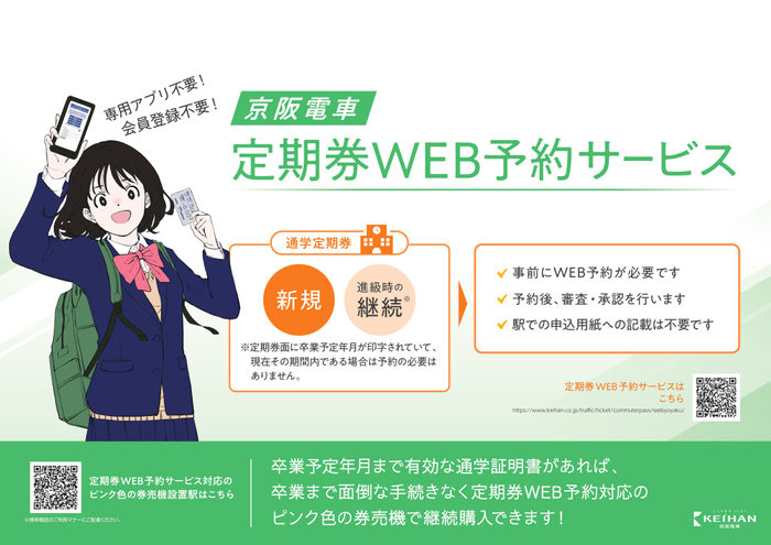 京阪電気鉄道株式会社(本社:大阪府枚方市、社長:井上欣也)では、定期券購入時の混雑緩和とお客さまの利便性向上のため、㈱スルッとKANSAIが提供する「定期券WEB予約サービス」を2026年3月18日(水)から導入します。