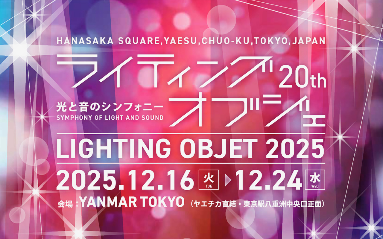 「ライティングオブジェ」は、2006年に“地球環境と子どもたちの未来に向けた平和”をテーマに誕生した光のアート展。空間演出プロデューサー・仁木洋子の呼びかけのもと、文化功労者である故・朝倉摂氏をはじめとする11名のアーティストが参加し、東京国際フォーラムからその歩みをスタートしました。