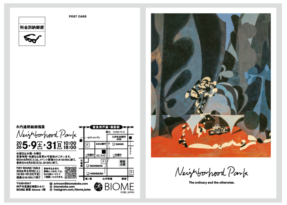 木内 達朗 個展「Neighborhood Park」 2026年5月9日(土)から5月31日(日)まで 10:00–17:30 *初日は付随イベント開催のため16:00まで *最終日は15:00まで *休廊日は水曜日・木曜日となります。