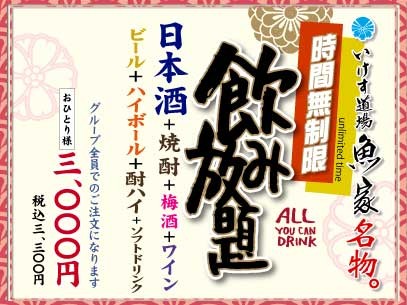 「時間無制限飲み放題3300円」 いけす道場魚家東陽町店がドリンクメニュー大幅リニューアル !