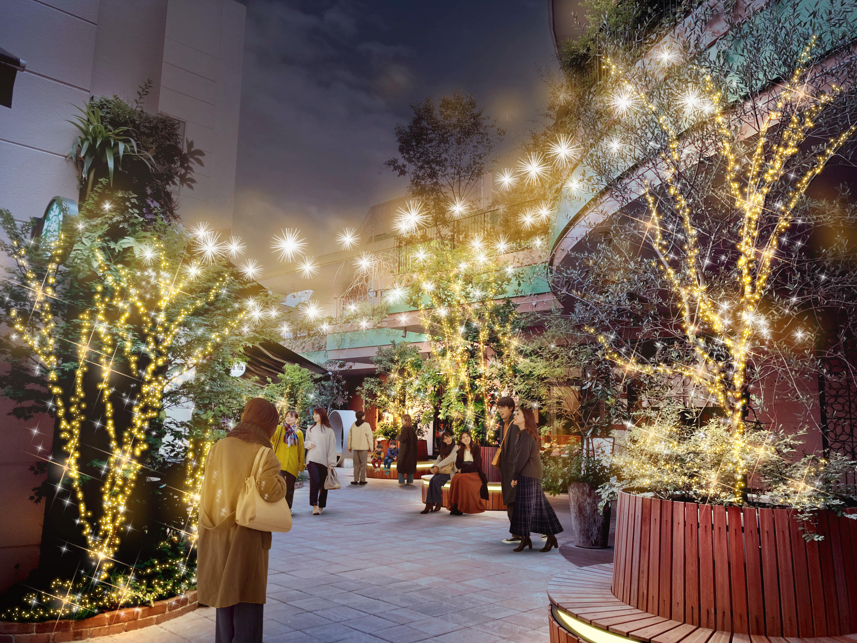 KUZUHA MALLのレストラン街であるダイニングストリートは、ショッピングモールには珍しい開放感のあるオープンモール型(屋外に面した)のレストランエリアであり、路面店の感覚でレストランを楽しんでいただけます。2023年には18年ぶりに植栽やテラス席の新設を含めたリニューアルを行い、緑あふれる癒し空間に生まれ変わりました。自然素材をベースとした、グリーンに囲まれたウェルネスな環境に、空間をより一層引き立てる景観演出としてイルミネーションを展開いたします。