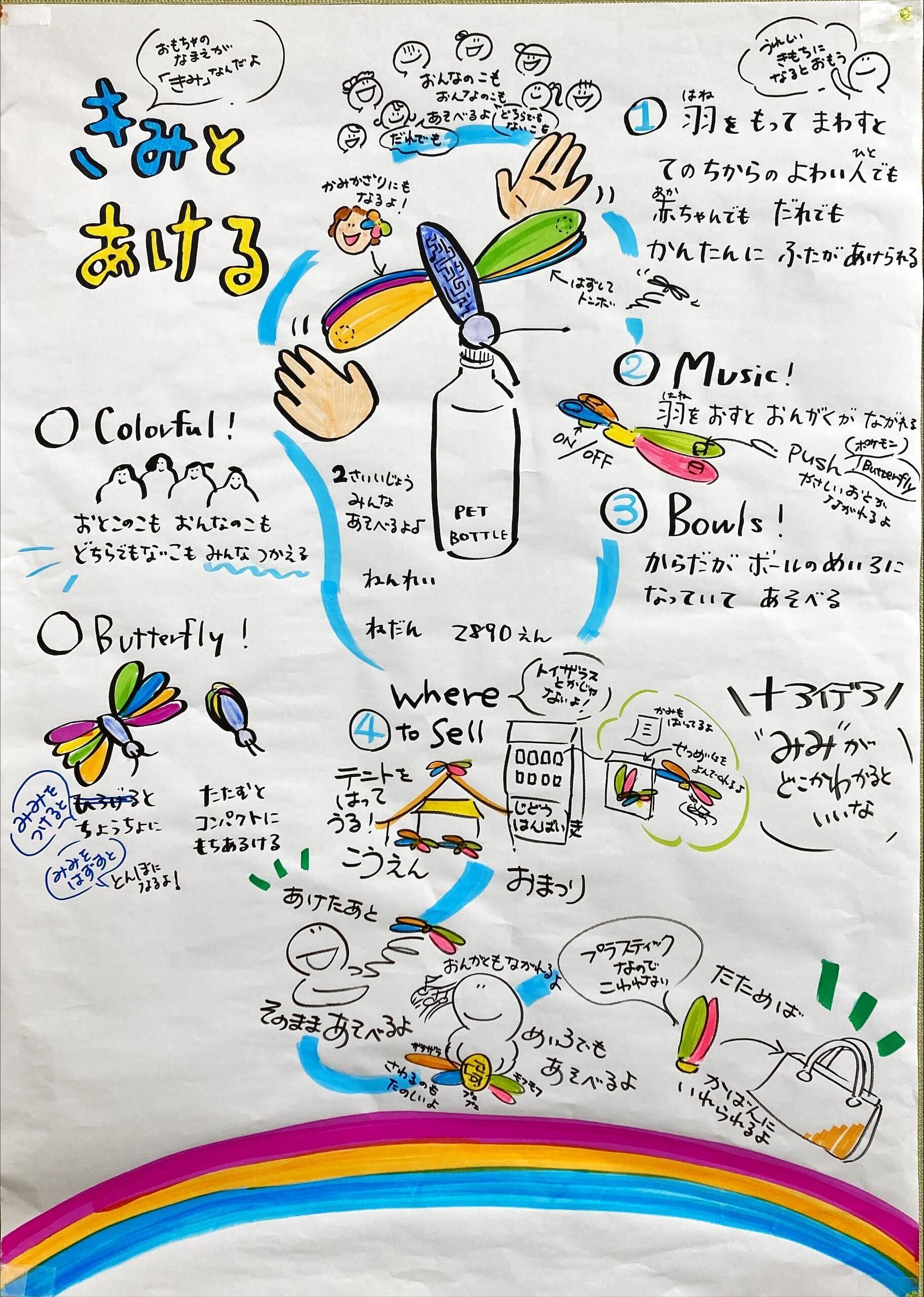 「まだ誰もつくっていない、売られていないおもちゃ」「男の子だけ、女の子だけ、ではなく、誰でもみんなが遊びたいというおもちゃ」という2つの条件をもとに、子どもたちが主体でアイデアを考えました。