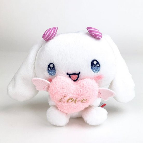 思わずキュン♡としてしまうかわいさの、シナモロールのぬいぐるみです。ふわふわな手触りで、羽付きのハートを抱えているキューピードシリーズ。おめめもブルーのグラデーションになっていて、いつもよりラブリー度がアップしています。