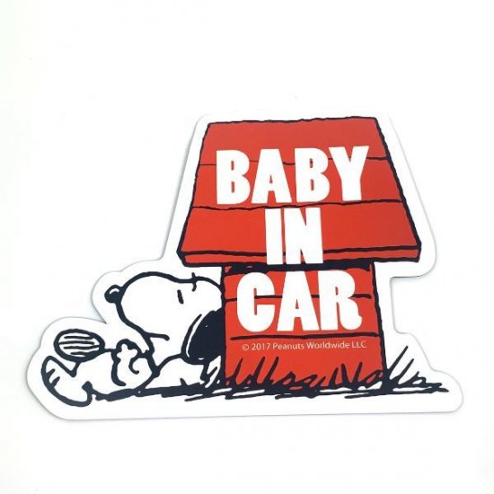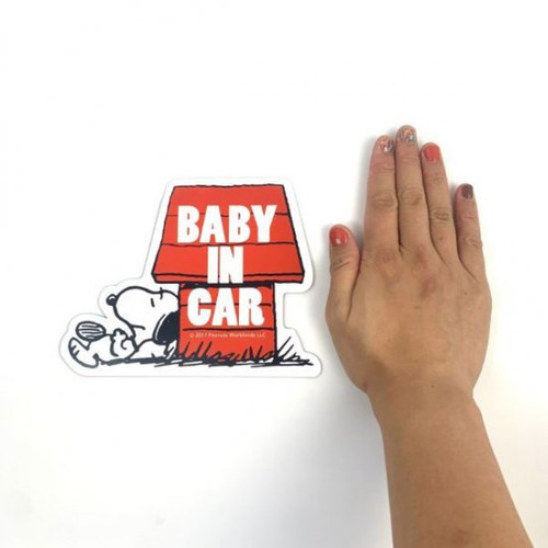 赤いスヌーピーハウスとスヌーピーデザインのセーフティサイン!ちょっとだらだら気味のスヌーピーに癒されます♪マグネットでピタッとくっつくから取り付けも簡単ですよ。後続車の人たちも癒せるかも。。。