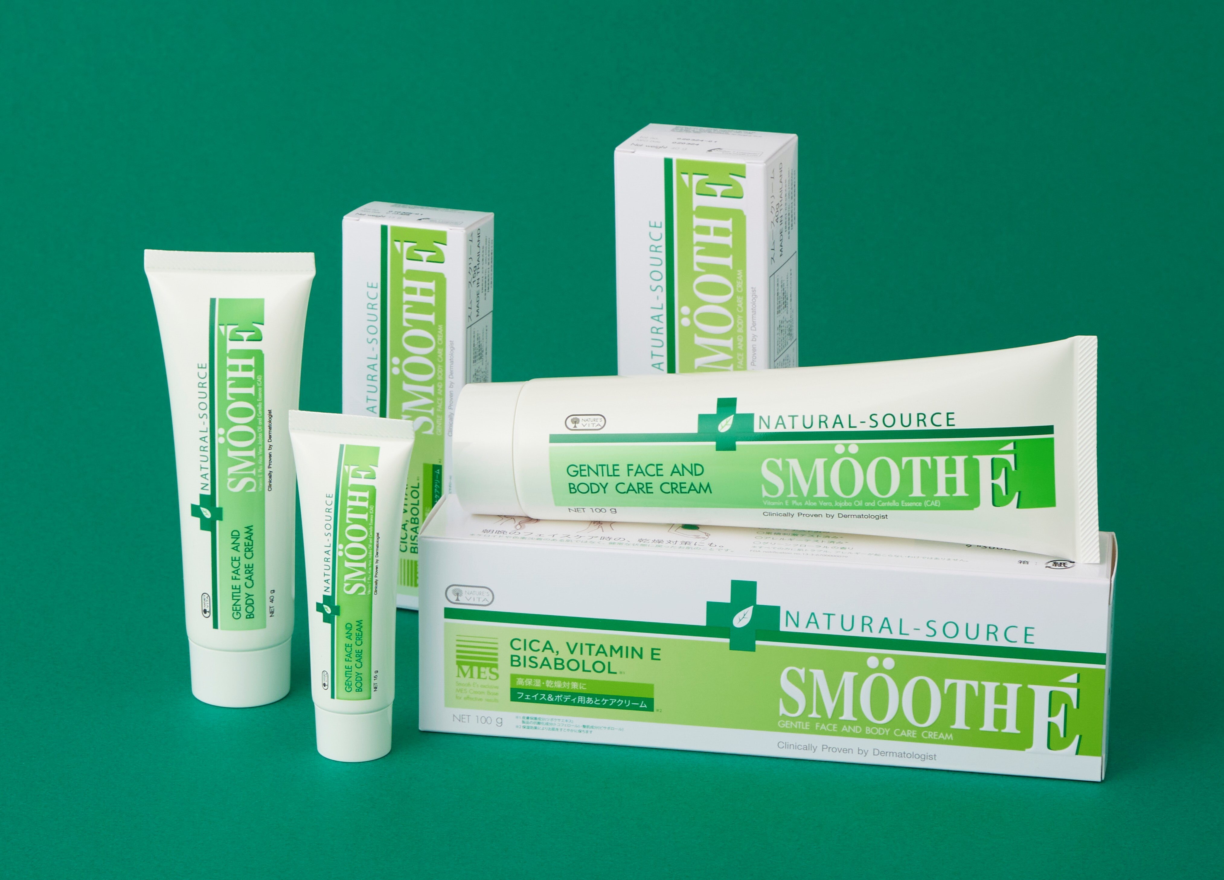 スムースEクリームは、ニキビあと*、キズあと*などさまざまな肌コンディションが気になる方、敏感肌、乾燥肌、ゆらぎ肌などお肌の調子が気になる方へ、皮膚科学に基づき約30年前、美容大国タイで開発、発売された美容保湿クリームです。アメリカの著名な研究開発センター(Nature's Vita)で美容成分(保湿など)が肌に効果的に角質層まで浸透する独自技術(MES)が考案され、その技術が製品に取り込まれています。
