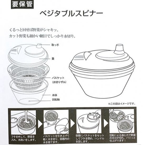 パッケージの説明にもあるように中には水切りザルがセットされているので、回転させれば野菜もパリっ、シャキっとした仕上がりに♪