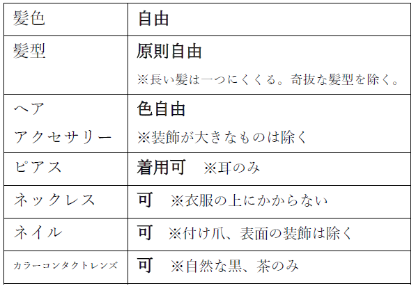 【新しい身だしなみ基準(一例)】