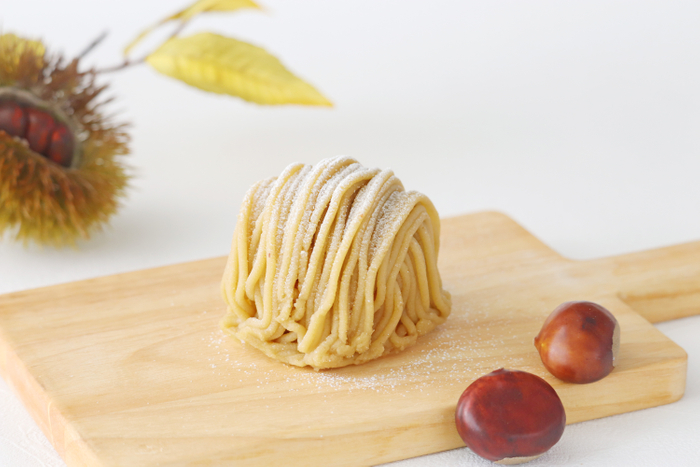 1シーズンで1万個販売する人気モンブラン。自社農園「くりくり園」の栗を贅沢に使用した濃厚モンブランクリームと、蜜付けした栗で贅沢に秋を味わえます。