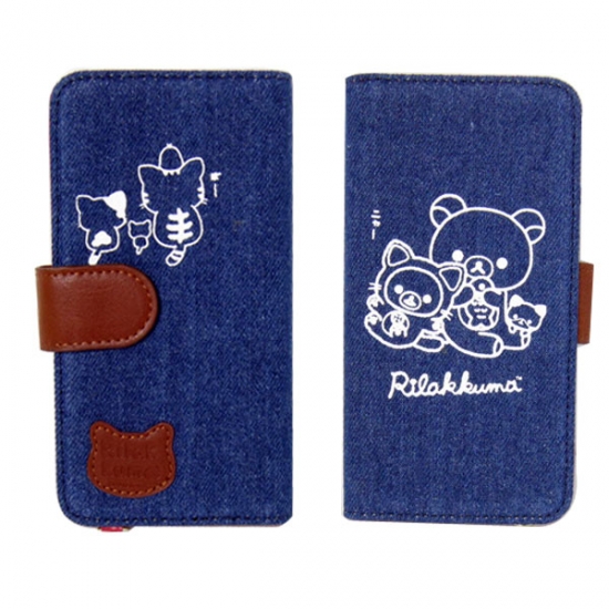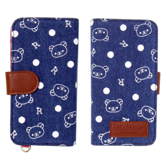 こちらもデニム素材の、スマホカバーです。リラックマの顔とイニシャルがロゴ風に並んでいます。皮風のベルトやタグが、高級感をアップしてくれていますよね。