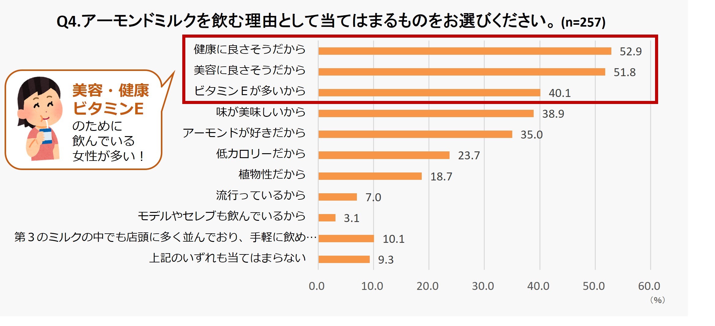 アーモンドミルクを選ぶ理由トップ3は「健康・美容・ビタミンE」