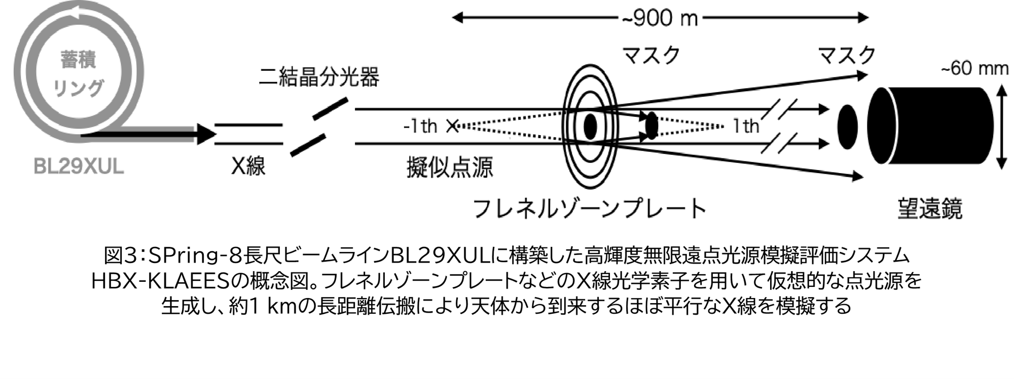 ・大型放射光施設SPring-8 注2)の約1km長尺ビームラインを活用し、高輝度かつ見かけ上ほぼ点光源となるX線評価システムHBX-KLAEES 注3)を構築した。