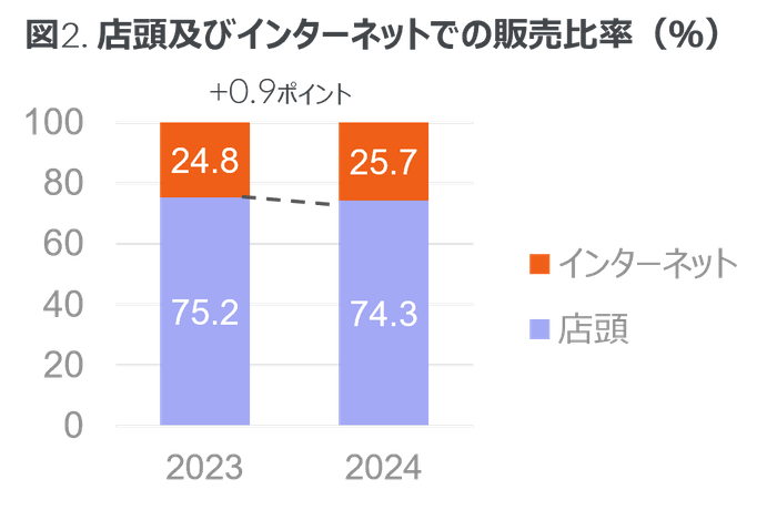 ・販売チャネル別では、店頭での販売比率が減少した一方で、インターネットでの販売が上昇する結果となった。