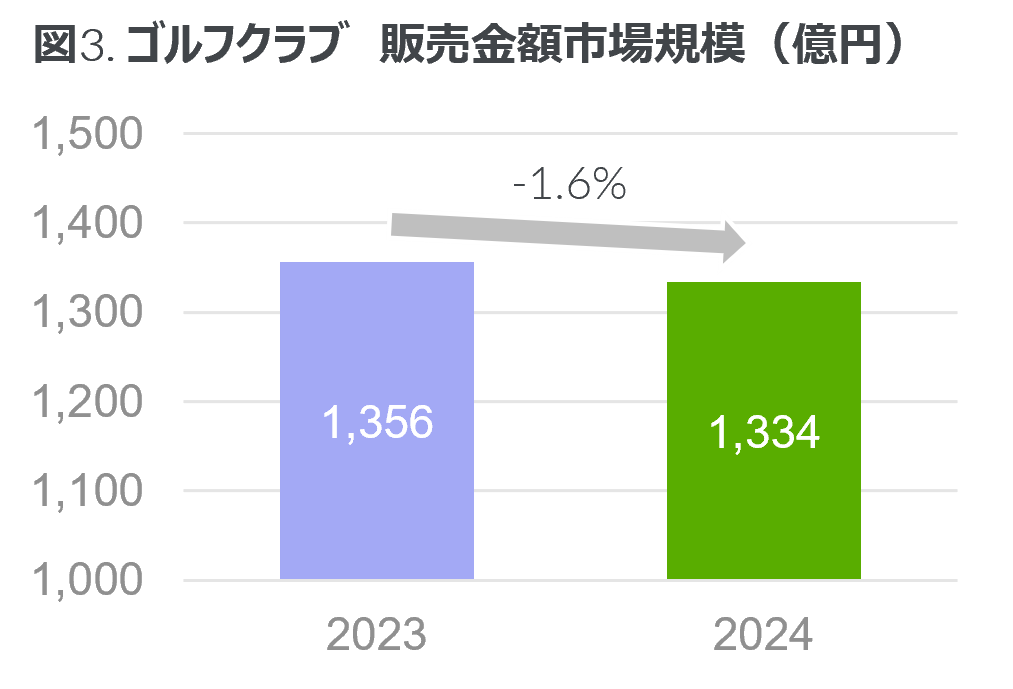 2024年はここ数年続いている物価の上昇に加え、猛暑日や降水量の増加等によるゴルフ場における入場者数の減少が影響することでゴルフ用品全体の市場規模が縮小することが懸念された。