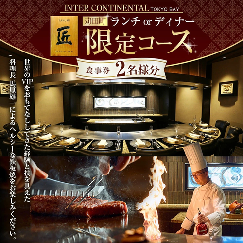 <選べるコース>ホテル インターコンチネンタル 東京ベイ 鉄板焼 匠 「苅田町ランチ限定コース」または「苅田町ディナー限定コース」 食事券 2名分