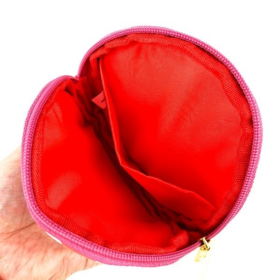 ファスナーを開くと、内側も赤いカラーです。ポケットもあるので、仕分けもできて便利♪ファスナーもサイドまで開くので、中身も見やすくて使いやすいんです。