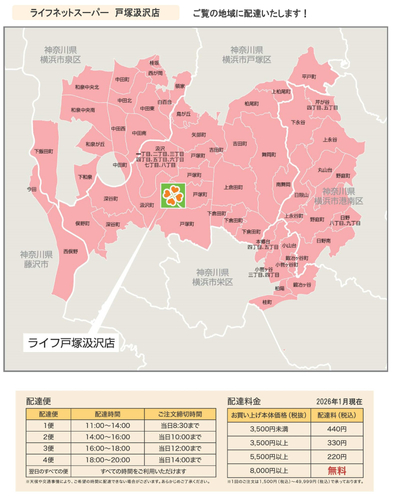 “おいしい” “ワクワク” “ハッピー” をお届けするライフコーポレーションは、3月25日(水)から「戸塚汲沢店」でライフネットスーパーのサービスを開始しました。