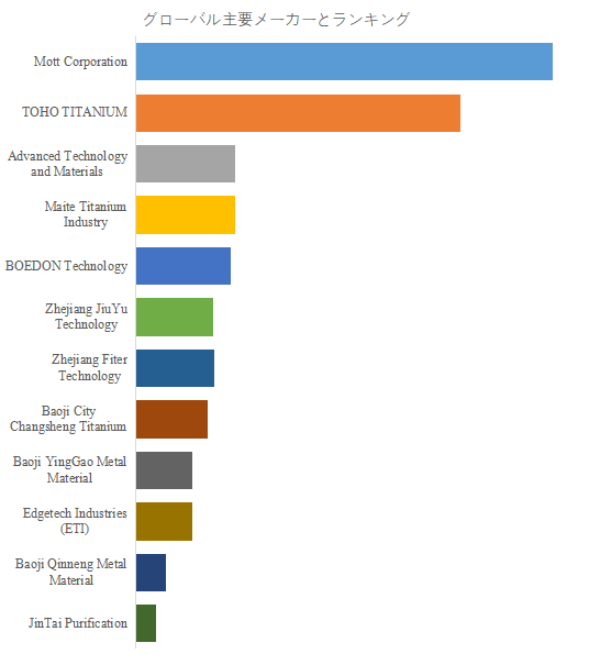 LP Informationのトップ企業研究センターによると、粉末焼結多孔質チタン板の世界的な主要製造業者には、Mott Corporation、TOHO TITANIUM、Advanced Technology and Materials、Maite Titanium Industry、BOEDON Technology、Zhejiang JiuYu Technology、Baoji City Changsheng Titanium、Zhejiang Fiter Technology、Baoji YingGao Metal Material、Edgetech Industries (ETI)などが含まれている。2024年、世界のトップ10企業は売上の観点から約73.0%の市場シェアを持っていた。