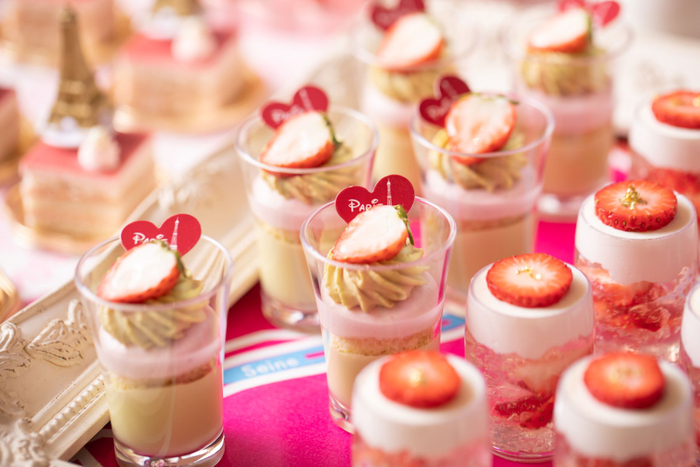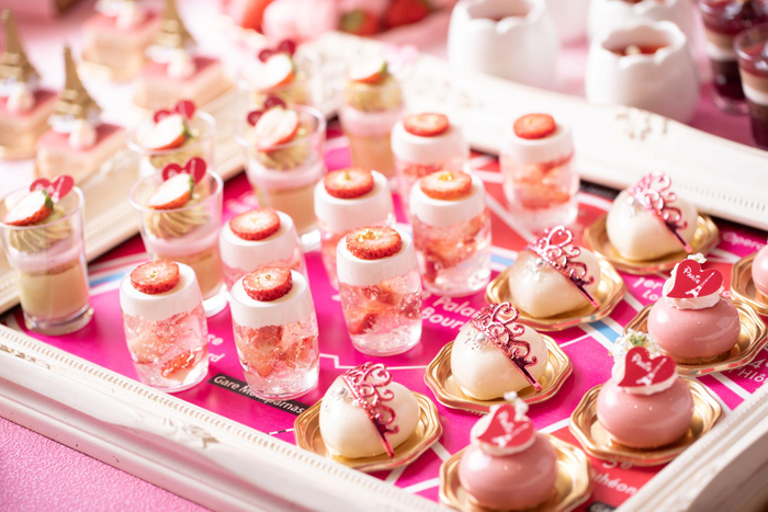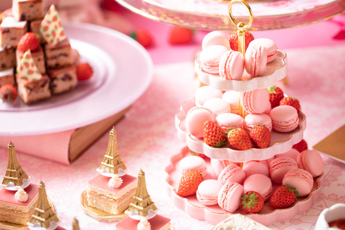 ホテル開業7周年を記念し、旬の“いちご”とバレンタインシーズンに楽しみたい“チョコレート”を掛け合わせた全18種類のスイーツと、料理長特製の6種類のフードを満喫できるブッフェイベントを開催。テーマは、パリきってのエレガントでシックなエリア「パリ7区」。スイーツには、パリを代表するアイコン“エッフェル塔”や、マカロンやクレープシュゼットなどの“フランス菓子”を取り入れ、思わず写真を撮ってしまいたくなるキュートな見た目に仕立てました。